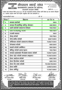 कपाल डिजाइन गरेको ३५० देखि ५०० रुपैयाँ, दाह्री डिजाइन गरेको १५० देखि २५०, टाउको मसाज गरेको २००, स्याम्पु गरेको १२० देखि १५०, कपाल कलर गरेको ५०० देखि ६५० रुपैयाँ, फेसियल गरेको एक हजारदेखि १२ सय रुपैयाँसम्म बढेको संघले जनाएको छ ।