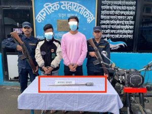 काठमाडौं । केहि व्यक्तिहरुले बा ५१ प ४६३९ नं. को मोटरसाइकलको Leg Guard बाट धारिलो हतियार तरवार झिकेको भिडियो खिची सामाजिक सञ्जाल टिकटकमा अपलोड गरी जनसर्वसाधारणमा अशान्ति मच्चाएको लगायतको सूचना प्राप्त हुन आएको ।