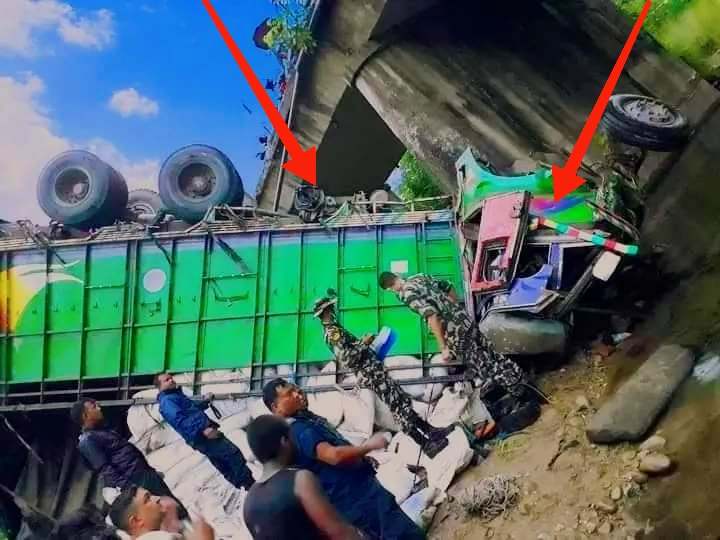 पुलमा रहेको खाडल छ्ल्ने क्रममा अनियन्त्रित भएर ट्रक खोलामा खसेको प्रहरीले जानकारी दिएको छ । प्रहरीका अनुसार ट्रक खोलामा बिहान ४ः३० बजेको समयमा खसेको थियो । दुर्घटनामा चालक बसन्त चौधरी र सहचालक प्रदीपकुमार रनिया घाइते भएका छन् ।