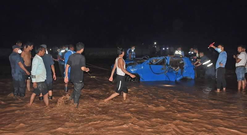 बिहान पौंने ११ बजेतिर बाढीले बगाएको स्कार्पियो निकाल्ने प्रयास भइ रहेको प्रहरी सहायक निरीक्षक दीपक चन्दले जानकारी दिएका छन् । स्कार्पियोमा चालक मात्रै रहेको र उनको उद्धार गरिएको प्रहरीले बताएको छ । जिल्लामा बिहान देखि परिरहेको पानीका कारण नदी तथा खोलाहरुमा पानीको बहाब ह्वात्तै बढेको छ । सरोकारवालाहरुले सावधानी अपनाउन आग्रह गरेका छन् ।