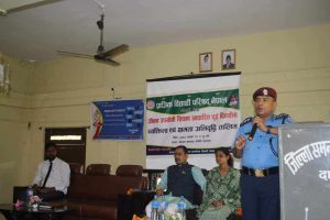 दाङ । समुदाय प्रहरी साझेदारी कार्यक्रम अन्तरगत घोराही उपमहानगरपालिका वडा नं. १५ स्थित जिल्ला समन्वय समितिको सभाहलमा प्राज्ञिक विद्यार्थी परिषद नेपाल घोराही दाङको आयोजना तथा परिषदकी कार्यक्रम संयोजक सरिता शर्माको अध्यक्षता जिल्ला प्रहरी कार्यालय दाङका कार्यालय प्रमुख प्रहरी उपरीक्षक वीर बहादुर ओलीको प्रमुख आतिथ्यता,