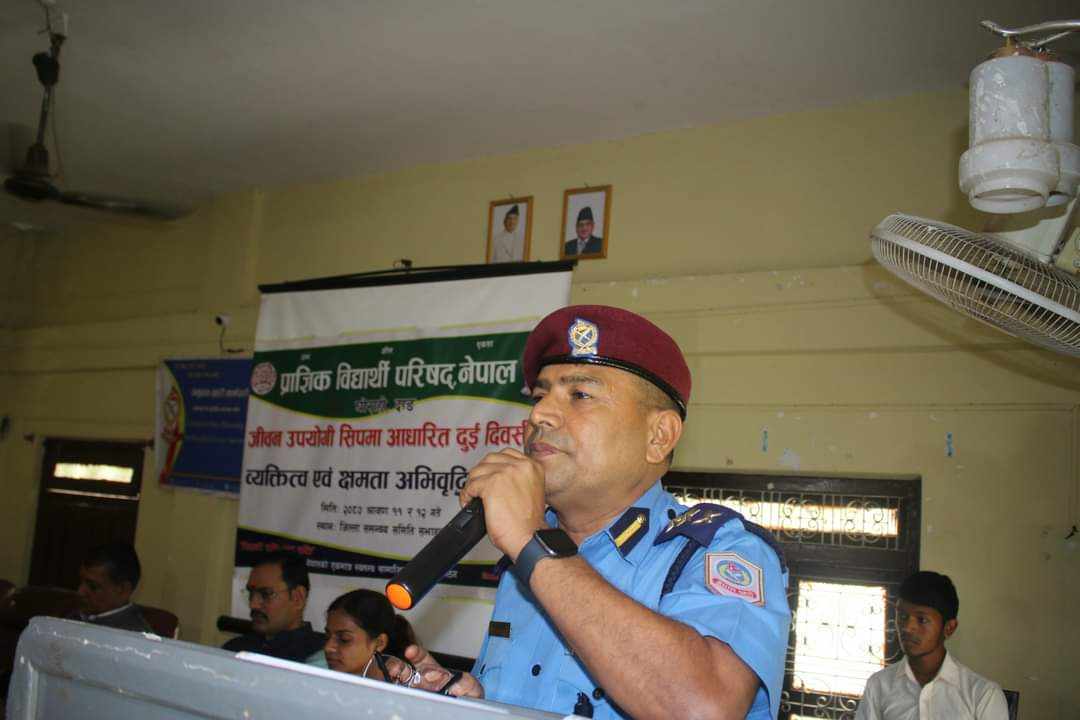 प्राज्ञिक विद्यार्थी परिषद नेपालका राष्ट्रिय सह- संगठन सचिव रमेश कडेल, परिषदका केन्द्रिय सदस्य शरद शर्मा, परिषदको लुम्बिनी प्रदेश व्यवस्थापन प्रमुख सुबेन्द्र यादव लगायतको आतिथ्यता एवं घोराही स्थित बिभिन्न क्याम्पस तथा बिद्यालयमा अध्ययनरत बिद्यार्थीहरुको सहभागितामा संचालित जीवन उपयोगी सिपमा आधारित द्वि- दिवसीय व्यक्तित्व एवं क्षमता अभिबृद्धी तालिम कार्यक्रममा