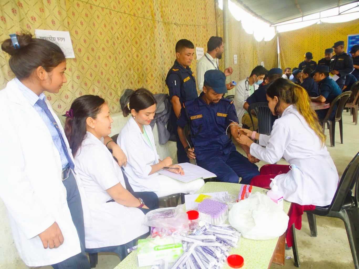 जिल्ला प्रहरी कार्यालय भैरहवामा कार्यरत प्रहरीको निःशुल्क स्वास्थ्य जाँच