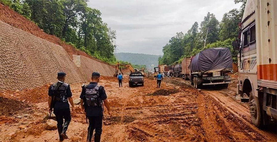 अहिले दाउन्ने खण्डमा पहाड काट्ने, पर्खाल लगाउने र कल्भर्ट निर्माणको काम भइरहेको अवस्थामा वर्षाले सडक अवरुद्ध बनाएको हो । दाउन्ने क्षेत्रमा गत वैशाख १ गते देखि १५ गतेसम्म राति ११ बजेदेखि बिहान ५ बजेसम्म आवागमन रोकेर विस्तारको काम भइरहेको छ ।