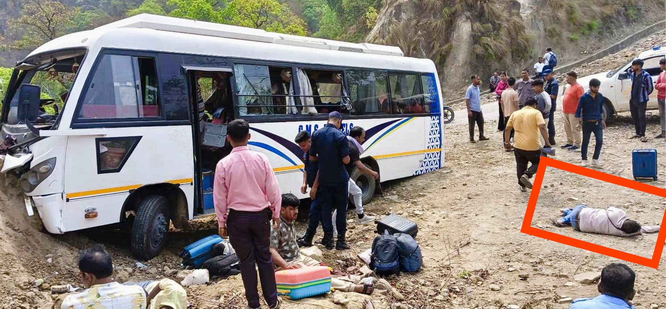 दाङ । गढवा गा.पा. वडा नं.५ चिसापानी स्थित लमही कोइलाबास सडक खण्डमा भारतको लखनउबाट पोखरा तर्फ भ्रमण जादै गरेको देश भारत जिल्ला लखनउ बस्ने वर्ष अं.५५ को महमद इजियास (चालक) ले चलाएको UP 32 MN 9666 मिनि बसको ब्रेक फेल हुन गई सडक छेउको भित्तामा ठोकिन जाँदा उक्त बसमा सवार चालक