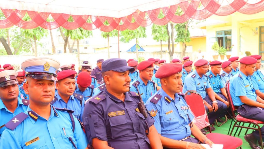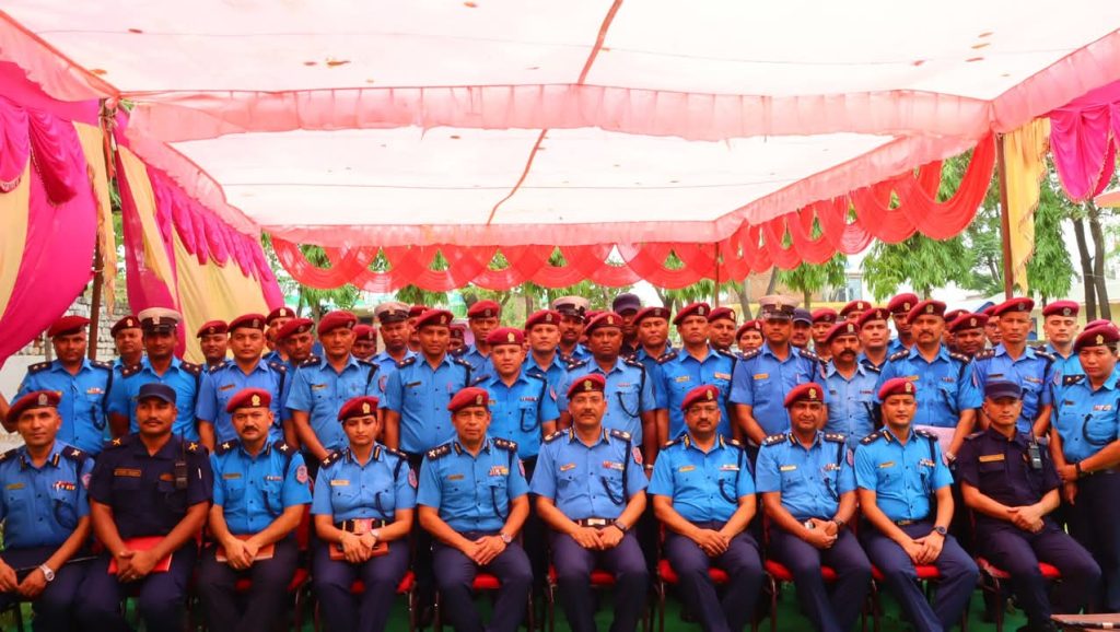बाँके । नेपाल प्रहरी प्रधान कार्यालय कार्य बिभाग नक्साल काठमाण्डौका प्रमुख प्रहरी अतिरिक्त महानिरीक्षक एआईजी सिद्धि बिक्रम शाहको निर्देशन सम्बोधनको क्रममा यस जिल्ला प्रहरी कार्यालय बाँकेमा पाल्नुभई कार्यालयको आन्तरिक तथा बाह्य निरीक्षण, विभिन्न शाखाहरुबाट सम्पादित कार्य विवरणको बारेमा जानकारी लिनुका साथै जिल्ला प्रहरी कार्यालय बाँके तथा मातहत समेतमा कार्यरत प्रहरी कार्यालयका प्रमुखहरु, सिनियर प्रहरी अधिकृत तथा उपस्थित सम्पुर्ण प्रहरी कर्मचारीहरुलाई समाजमा शान्ति सुरक्षाको अवस्था सुदृढीकरणमा प्रहरीले महत्वपुर्ण उपस्थिति जनाई प्रमाणमुखी अनुसन्धान र अभिलेख व्यवस्थापनमा जोड दिनुपर्ने बताउँदै सांगठनिक मूल्य र मान्यता अनुरूप काम कारवाही गर्न, जनमुखी प्रहरी सेवा प्रवाह गर्न र प्रत्येक प्रहरी कर्मचारीले प्रहरी आचरण तथा आचारसंहिताको अक्षरस पालना गर्न निर्देशन समेत दिनुभएको थियो ।