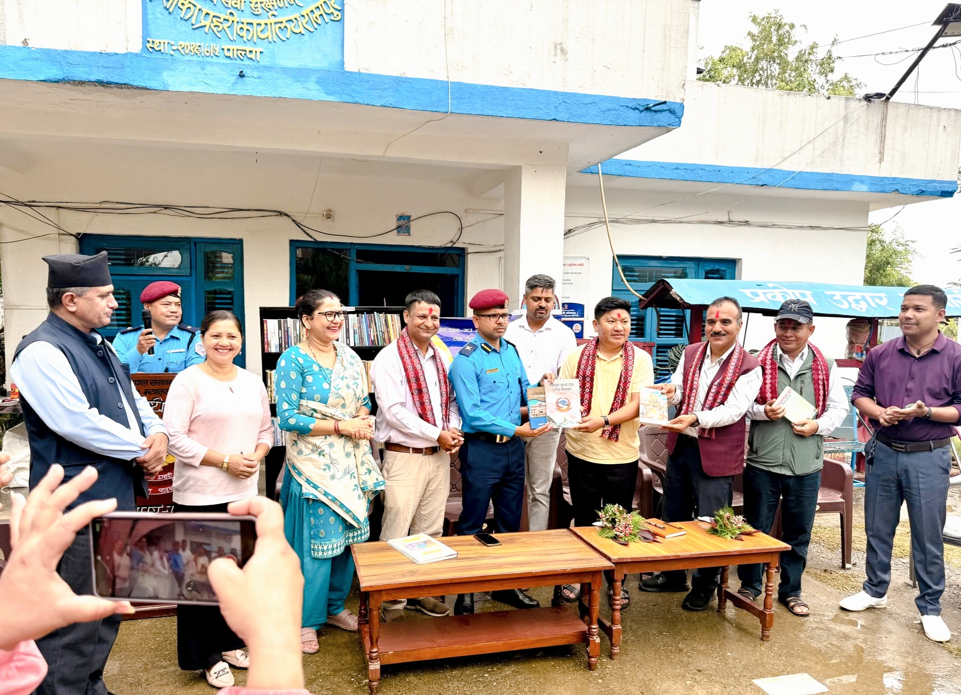 पाल्पा । कालिगण्डकी फाउण्डेशनका संरक्षक सन्दिप राना अध्यक्ष निकण्ठ भण्डारी सहितको टोलीले बिद्यालयका प्रध्यानाध्यापक, समाजसेवीको उपस्थितीमा ईलाका प्रहरी कार्यालय रामपुर पाल्पाको