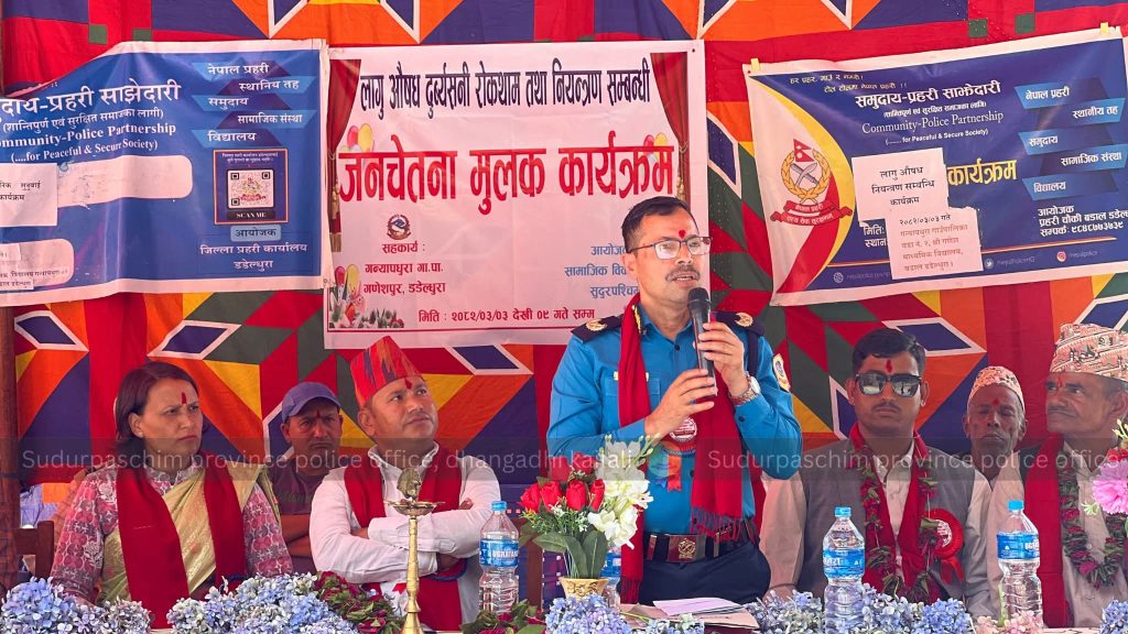 सम्बन्धि जनचेतना मुलक कार्यक्रममा भनाइ राख्नु हुँदै सुदूरपश्चिम प्रदेश प्रहरी प्रमुख प्रहरी नायव महानिरीक्षक डम्बर वहादुर वि.क.द्वारा उद्घाटन सम्पन्न भएको सुदृरपश्चिम् प्रदेश प्रहरी कार्यालय धनगढीले जानकारी दिएको छ ।