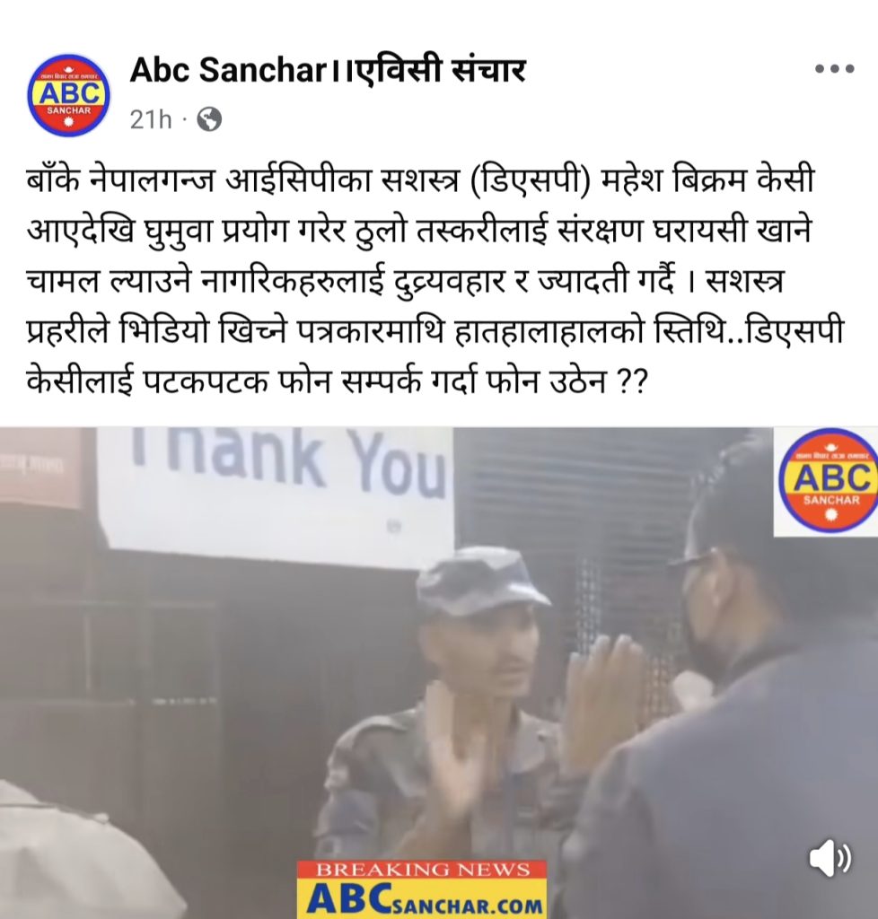बाँके । नेपालगन्ज नेपाल भारत सीमा क्षेत्रमा हुने आपराधिक गतिविधि तथा तस्करी नियन्त्रण गर्न खटाइएका घुमुवाहरुले आचरण विपरीत काम गर्न थालेपछि सशस्त्र प्रहरी बल नेपाल नं. ५ विन्ध्यावासिनी बाहिनी कपिलवस्तुका प्रमुख सशस्त्र प्रहरी नायब महानिरीक्षक डिआईजी दिपेन्द्र कुँवरले एबिसी संचार ड्टमा प्रकाशित समाचार आएको एक घन्टा भित्र आईसिपीका सशस्त्र डिएसपी र भन्सार इन्स्पेक्टरको घुमुवाहरु जगत वली उर्फ (JK) र किरण भण्डारी हरूलाई फिर्ता बोलाएको छ ।