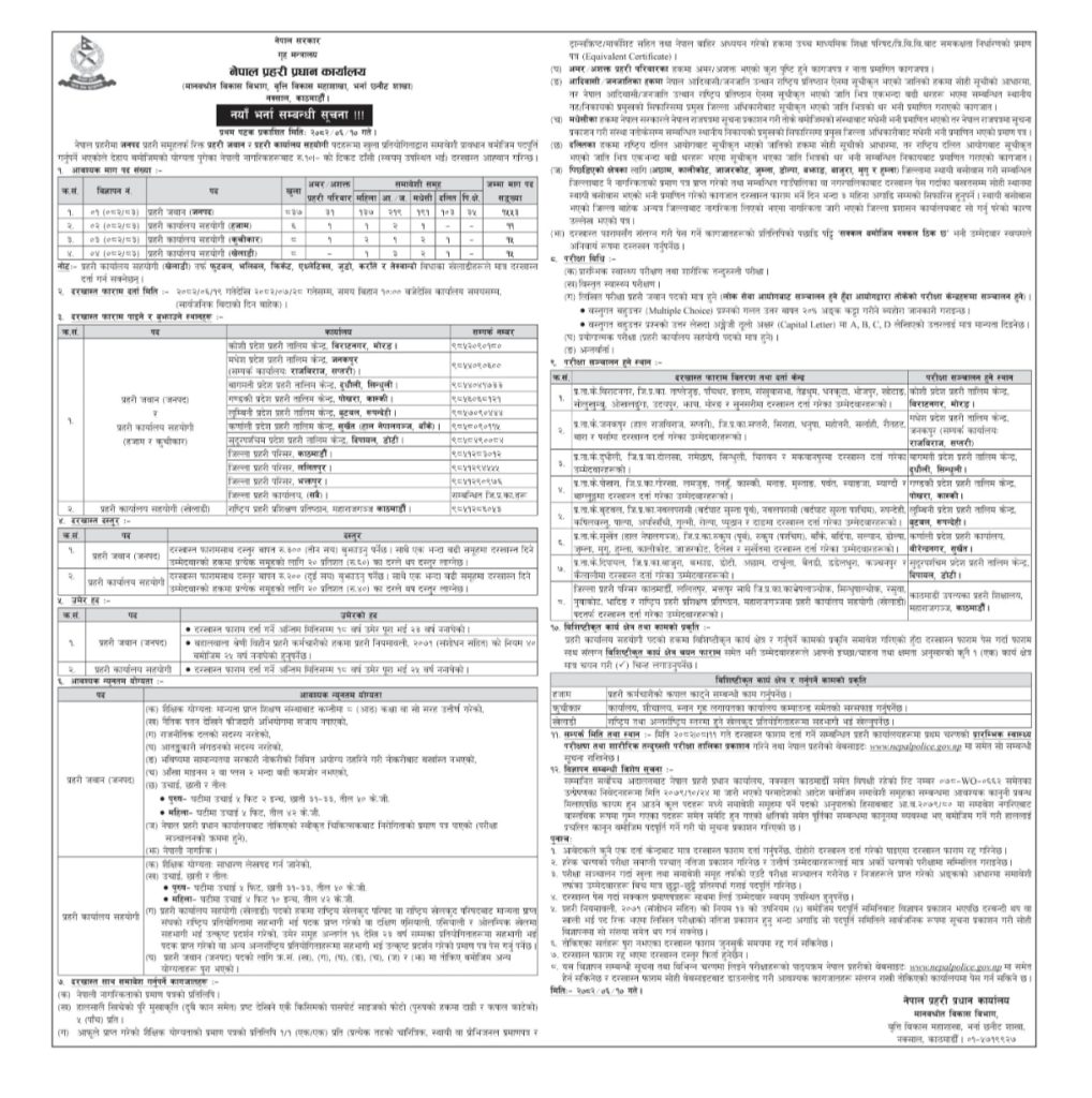 प्रहरी जवानका लागि न्यूनतम ८ कक्षा पास गरेको हुनुपर्ने सूचनामा उल्लेख छ। प्रहरी कार्यालय सहयोगीका लागि भने साधारण लेखपढ गर्न मात्र जाने पुग्नेछ।