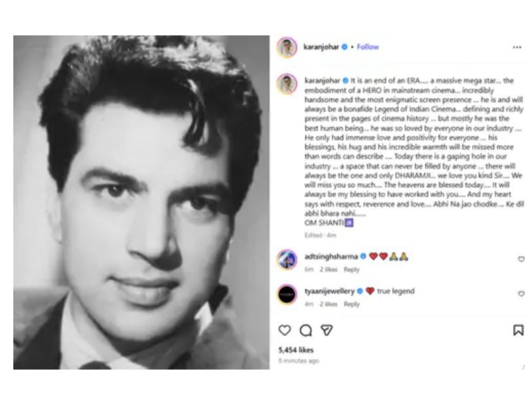 करण जोहरले धर्मेन्द्रको निधनको पुष्टि गर्दै आफ्नो आधिकारिक सामाजिक सञ्जाल खाता मार्फत उनलाई श्रद्धाञ्जली अर्पण गरे। एजेन्सी