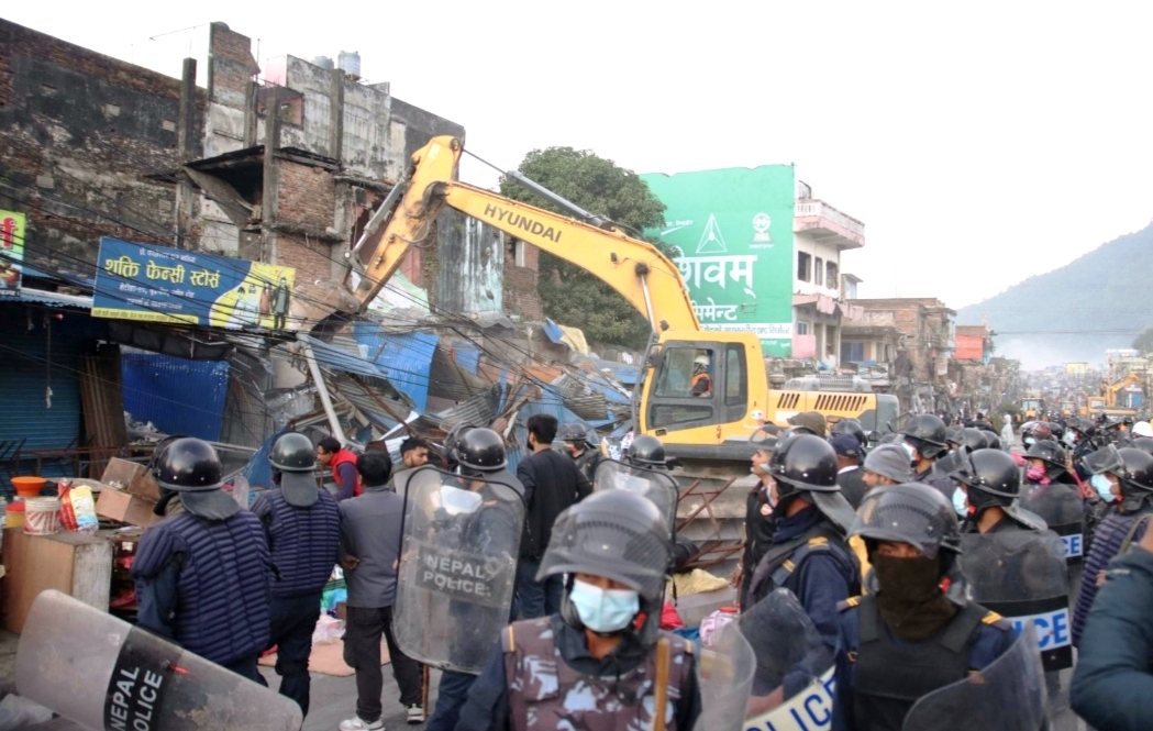 सुरक्षाकर्मीहरू बाक्लो रूपमा परिचालन गरेर स्थानीय प्रशासनको सहयोगमा सडक डिभिजन हेटौँडाले शनिवार बिहानबाट रेखाङ्कनभित्र परेका संरचना भत्काउन थालेको हो ।