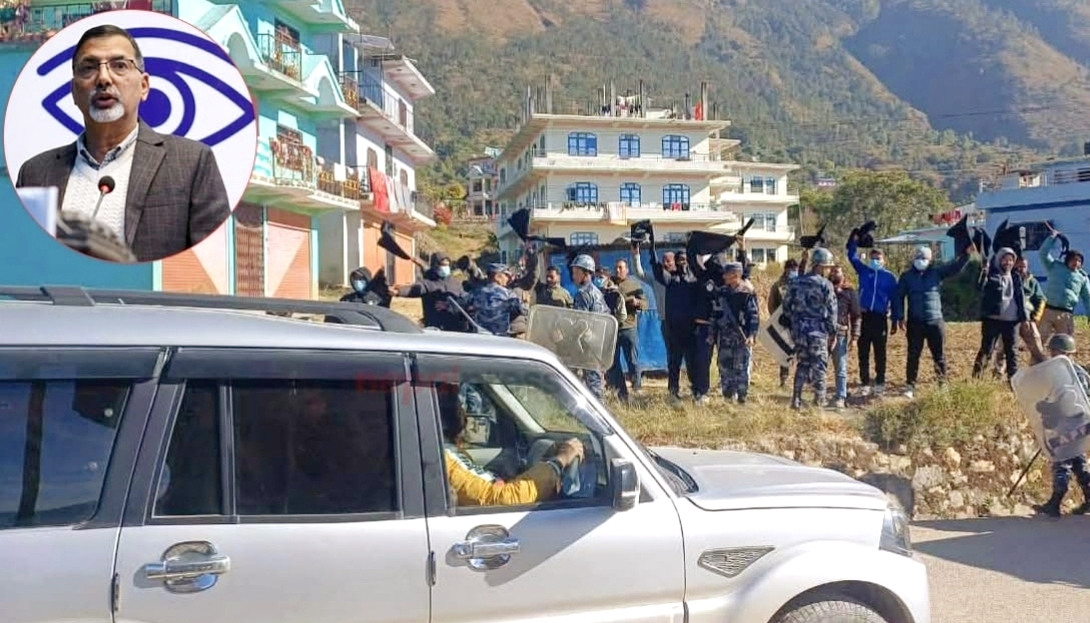 आइतबार पार्टीको कामका लागि गृह जिल्ला रुकुम पश्चिम पुगेका शर्मालाई रुकुमको सल्ले विमानस्थलअगाडि कालो झण्डा देखाएर कार्यकर्ताले विरोध जनाएका हुन् ।