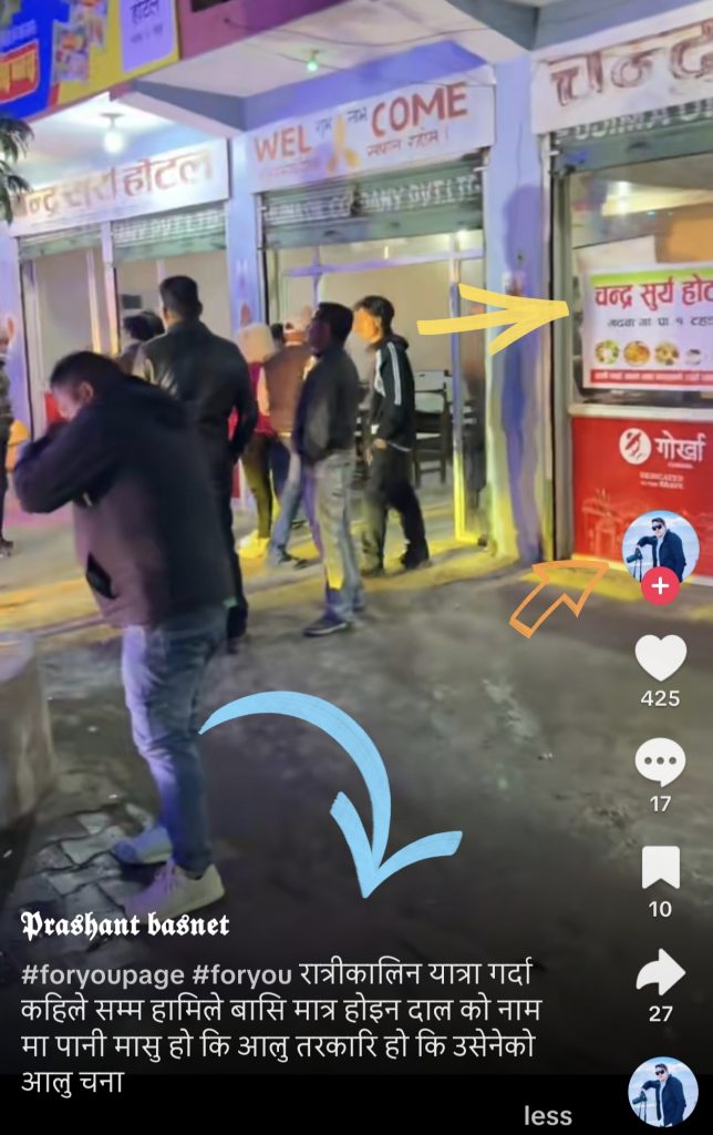 दाङ चन्द्रसूर्य हाेटलमा रात्रिकालिन बसका यात्रुलाई गुणस्तरहिन खाना खुवाउने गरेको यात्रुको गुनासो,