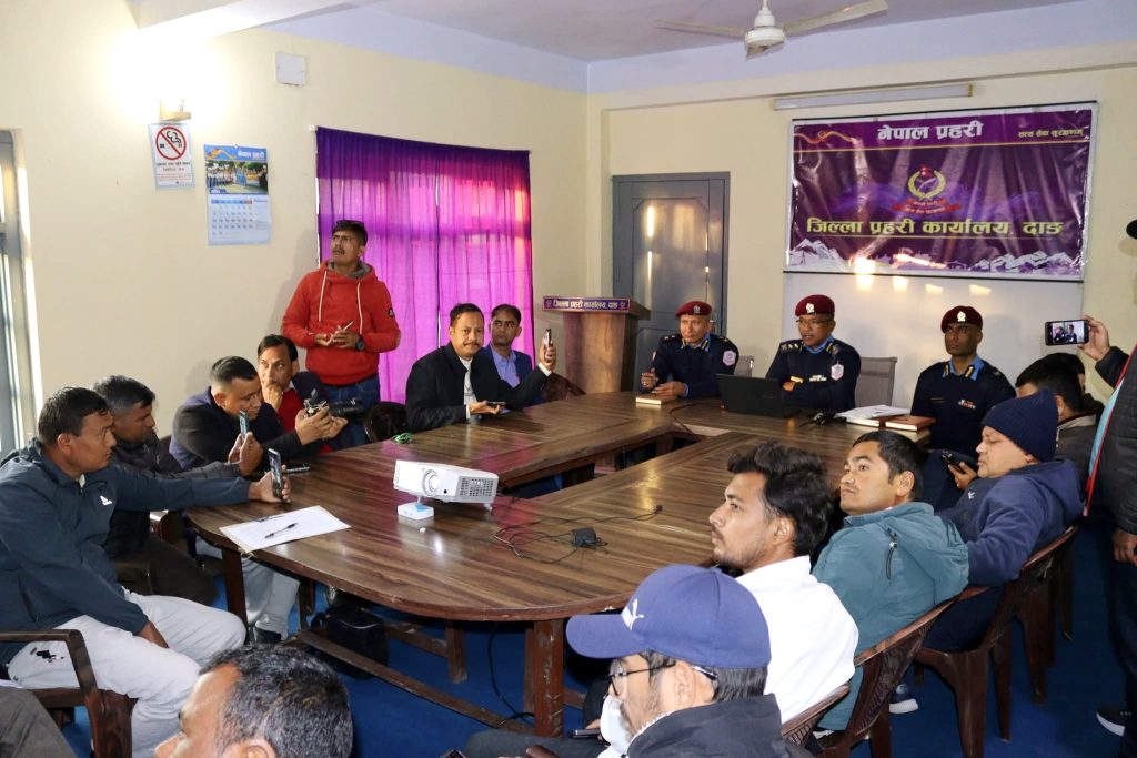 काठमाडौं । नेपाल प्रहरी प्रधान कार्यालय अपराध अनुसन्धान विभाग प्रमुख प्रहरी अतिरिक्त महानिरीक्षक एआईजी सुशील सिंह राठौर, तालुक लुम्बिनी प्रदेश प्रहरी कार्यालय दाङका प्रहरी प्रमुख प्रहरी नायव महानिरीक्षक राजेन्द्र प्रसाद भट्टज्यू अनुगमन तथा निरीक्षणको क्रममा यस जिल्ला प्रहरी कार्यालय दाङमा पाल्नुभई अपराध अनुसन्धान शाखा निरीक्षण गर्नुभई शाखाबाट सम्पादित कार्य विवरणको बारेमाजानकारी लिनुका साथै जिल्ला प्रहरी […]