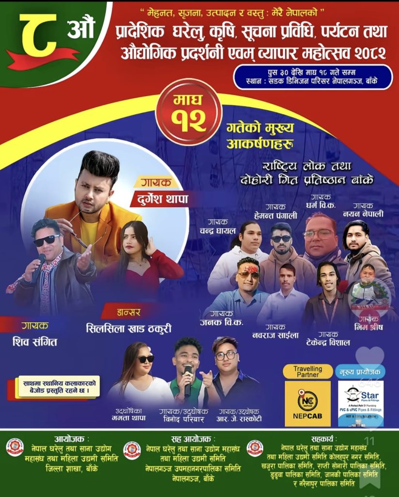 माघ १२ गते बाँकेको नेपालगन्जमा सञ्चालित महोत्सवमा आफ्नो प्रस्तुति राख्न आउने भनेर