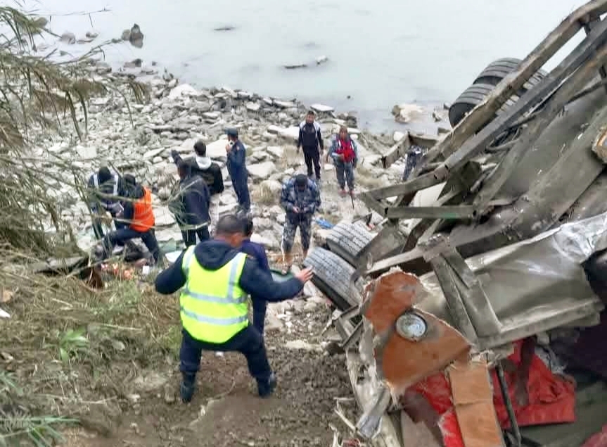 धादिङको त्रिशूली नदिमा बस दुर्घटना दुई विदेशीसहित १८ जनाको मृत्यु २६ घाइते,