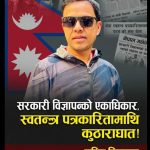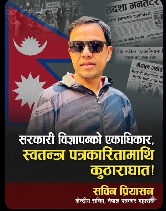 सरकारी विज्ञापनको एकाधिकार, स्वतन्त्र पत्रकारितामाथि कुठाराघात !सविन प्रियासन (केन्द्रीय सचिव) नेपाल पत्रकार महासंघ