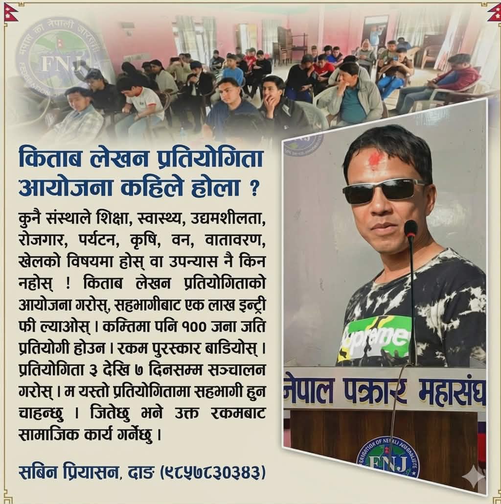 किताब लेखन प्रतियोगिता आयोजना कहिले होला ?