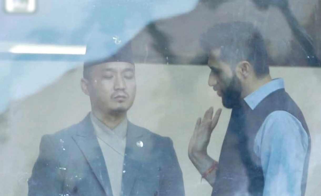 काठमाडौं । आज सोमबार प्रतिनिधिसभा बैठक जारी रहँदा राष्ट्रिय स्वतन्त्र पार्टी (रास्वपा) का सभापति रवि लामिछानेले गृहमन्त्री सुधन गुरूङसँग बैठक हलबाहिर करिब १५ मिनेट छलफल गरे। उनीहरूको कुराकानीको विषय खुलेको छैन। गृहमन्त्री गुरूङले गत बिहीबार पोखरा महानगरका मेयर धनराज आचार्यसँग फेवाताल किनार आफ्नो जग्गा भएको बताएका थिए। यसले विवाद उत्पन्न भएपछि उनले उक्त जग्गा व्यवसाय गर्न भाडामा लिएको र जग्गाधनीले मापदण्डभित्र पर्ने जग्गा हो भनेर लुकाएको दाबी गरेका छन्।