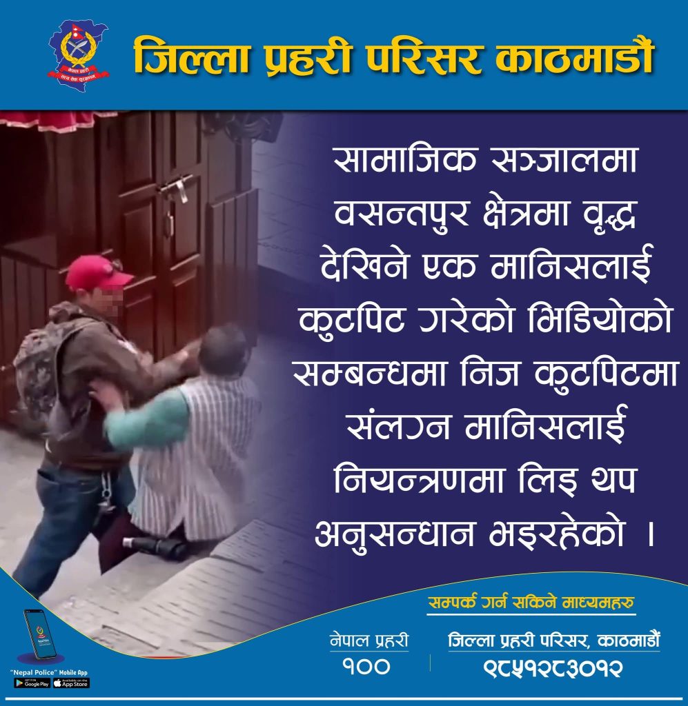काठमाडौं वसन्तपुर क्षेत्रमा ज्येष्ठ नागरिकमाथि कुटपिट गर्ने एक व्यक्ति पक्राउ,५ दिनको म्याद थप,