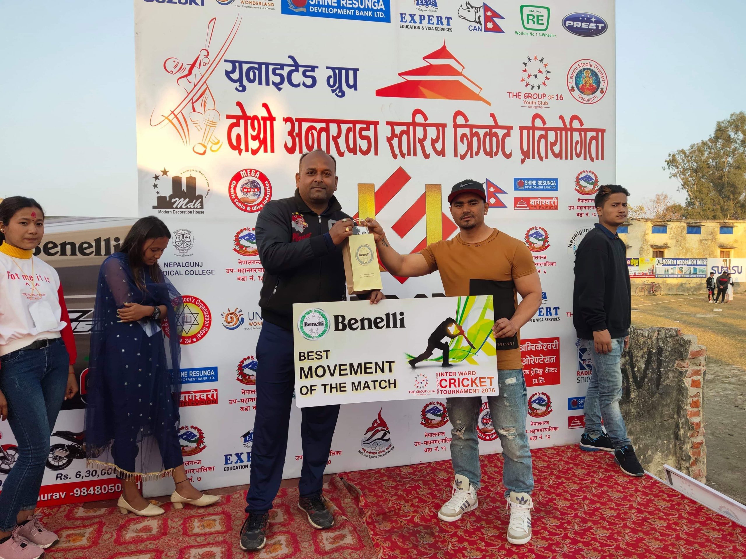 खेलमा प्रतिक गिरी म्यान अफ द म्याच र शसी रंञ्जन कर्णले म्याजिकल मुभमेन्टको पुरस्कार पाए ।