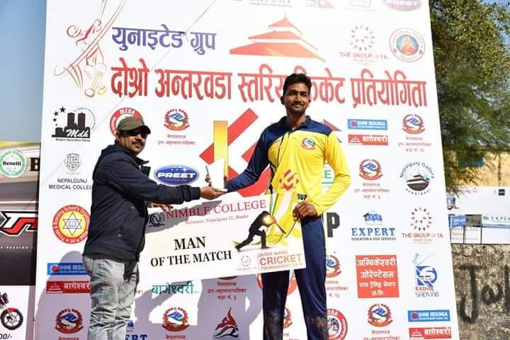 टोलीका लागि रमेश सिहले ५४ रनको योगदान गरे । अमरिक सिह शिखले १२ रन बनाए । ८ नम्बर वडाका अफाख शेख, अफताब अन्सारी, समसुद्धिन अन्सारीले समान २ विकेट लिए । नासिर अन्सारीले १ विकेट लिए । खेलमा नासिरले म्यान अफ द म्याच, अफताव अन्सारीले म्याजिकल मुभमेन्ट पुरस्कार जित्न सफल भए । आइतबार उत्कृष्ट भएका खेलाडीलाई नेपालगन्ज उपमहानगरपालिका वडा नम्बर १ अध्यक्ष प्रमोद रिजाल, ८ नम्बर वडा अध्यक्ष सुरेन्द्र गुप्ता वैश्य, ७ नम्बर वडा अध्यक्ष जुमँन खाँ, बेन्ली बाइकका लागि नेपालगन्जको आधिकारिक बिक्रेता एसके मोर्टसका शौरभ कर्मचार्यले पुरस्कार दिएका थिए ।